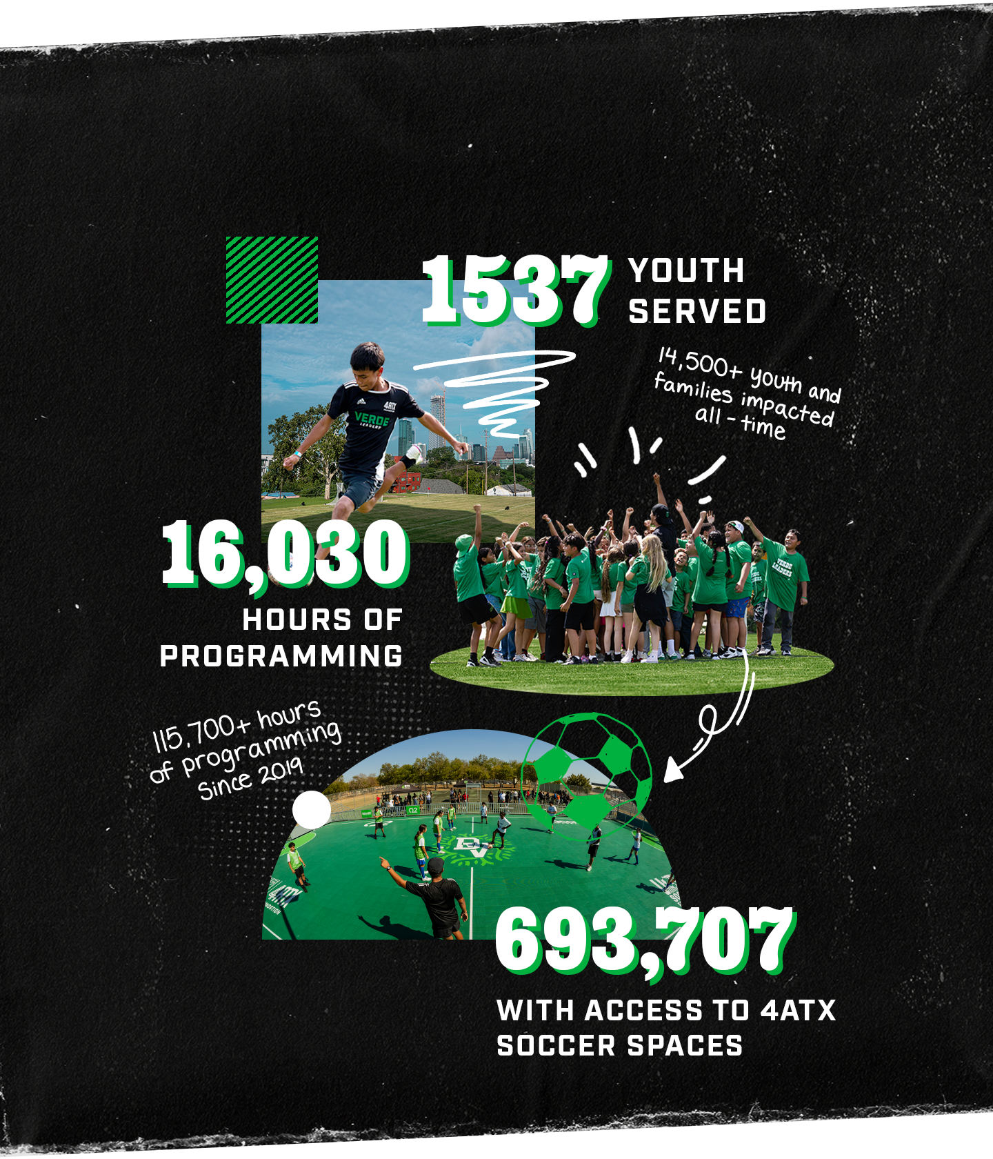 With Central Texas youth facing new and increasing challenges, we rooted in our mission to meet students where they are and remain committed to providing soccer spaces for them to learn, grow, and find pathways to success. Guided by a vision of a healthier, unified Central Texas community, we set ambitious goals to move us closer to that future: